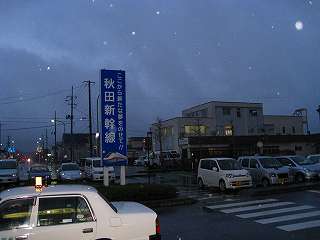 駅前の様子です。 雨が雪っぽくなってきました。 |