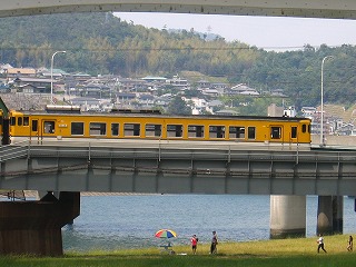 あまりこの路線では見ない列車です。乗客は乗ってなかったので回送列車だと思います。4両編成でした。