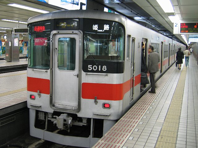 阪神電車 | 阪神梅田駅 | 阪神電車です。山陽電鉄経由の姫路行き直通特急です。 方向幕 |
