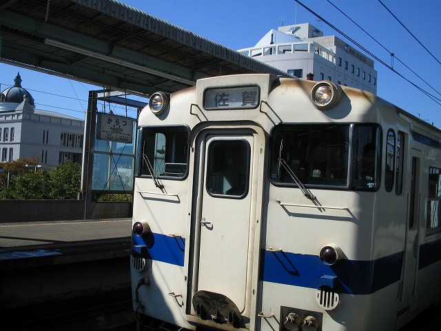 唐津線電車 | 唐津駅 | 唐津線を走っている電車です。九州旅行の際に唐津から佐賀まで乗りました。 | 04/10/28 |
