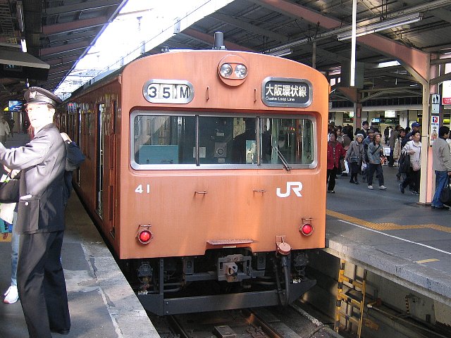大阪環状線電車 | 天王寺駅 | 大阪環状線を走る電車です。たしか内回り(左回り)だったと思います。 つまり、最後尾。 |